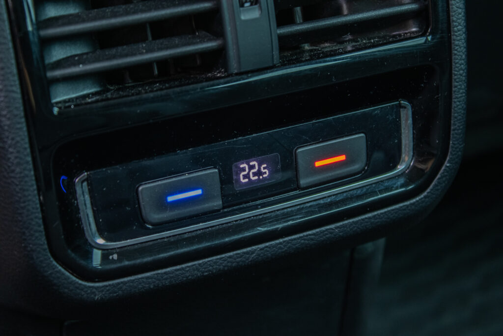 Centrálne uzamykanie, El. predné okná, El. nastaviteľné sedadlá, El. zrkadlá, Diaľkové ovládanie, Rádio, Nezávislé kúrenie, Multifunkčný volant, Lakťová opierka, Bezkľúčové štartovanie, Ostrekovače svetlometov, Automatická trojzónová klíma, Apple CarPlay, Android Auto, Welcome light, Radenie pod volantom, Bezdrôtové nabíjanie pre smartphony