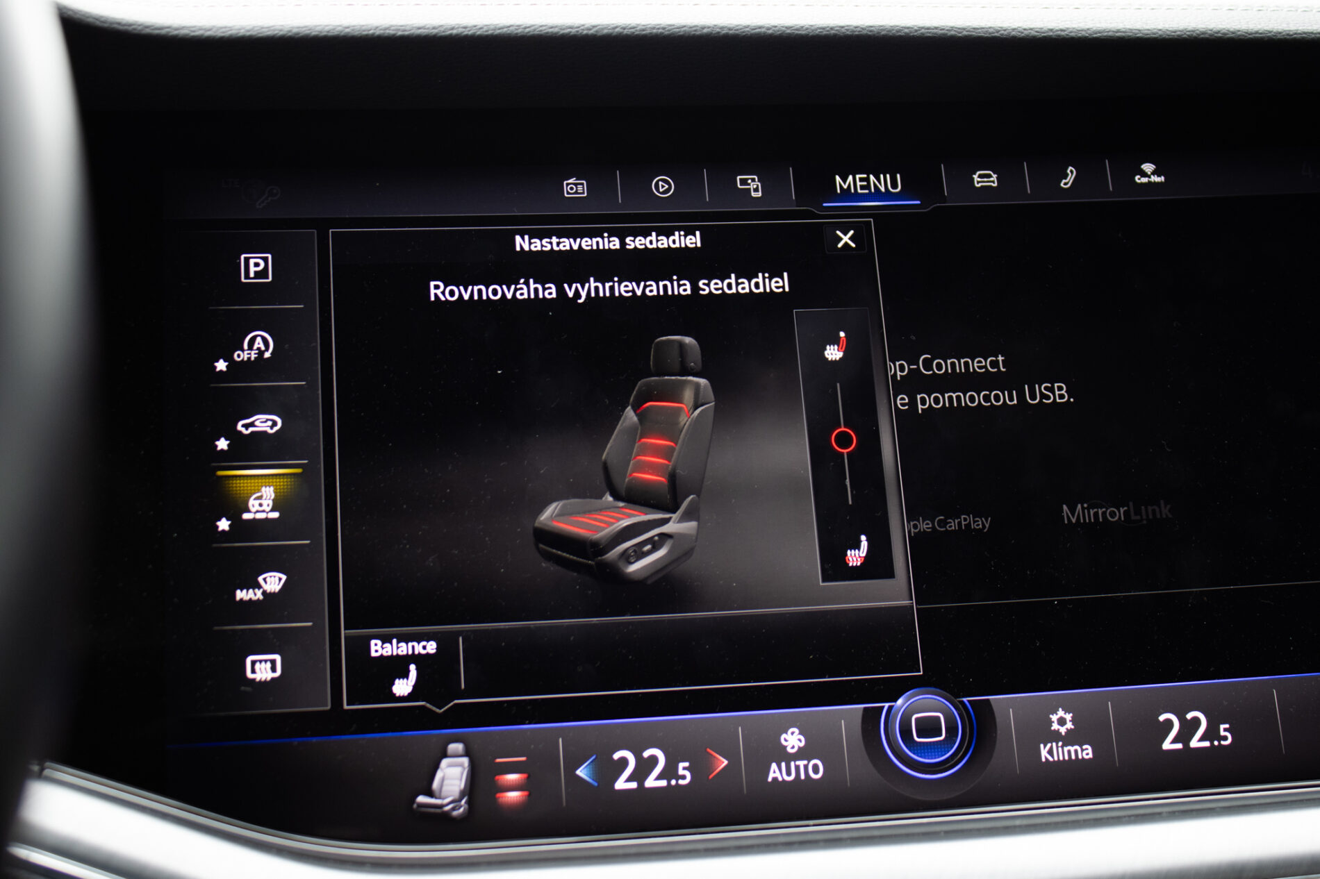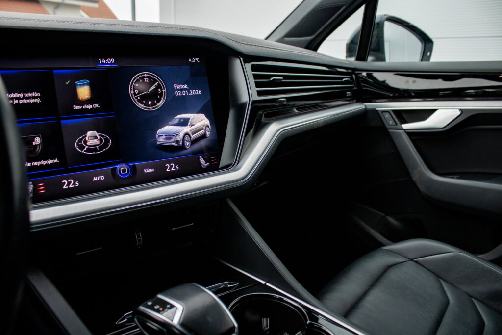 Centrálne uzamykanie, El. predné a zadné okná, El. zrkadlá, Automatická dvojzónová klimatizácia, Diaľkové ovládanie, Rádio, Multifunkčný volant, Lakťová opierka, Bezkľúčové štartovanie, Vzduchové odpruženie, Vonkajší teplomer, Klimatizovaná priehradka, Apple CarPlay, Android Auto, Welcome light, Virtuálny kokpit, Radenie pod volantom