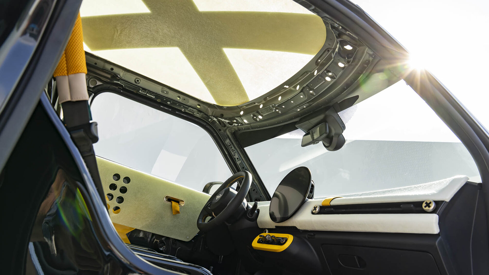 Prvým konceptom je MINI JCW Electric s prezývkou Skeg, čo odkazuje na plutvu surfovej dosky. Je to automobil, ktorý pôsobí ako stvorený na pobrežie, kde sa asfalt stretáva s pieskom a motoristická kultúra sa prelína so surfovou. Dizajn karosérie je odvážny a svieži, kombinuje žlté a strieborné odtiene, ktoré sa lesknú ako slnko na vlnách. Najzaujímavejším prvkom sú však polopriehľadné panely z laminátu, ktoré znižujú hmotnosť vozidla približne o pätnásť percent. Estetika tu ide ruka v ruke s funkčnosťou, čo je typické aj pre samotný surfing – ľahkosť, obratnosť a voľnosť pohybu.