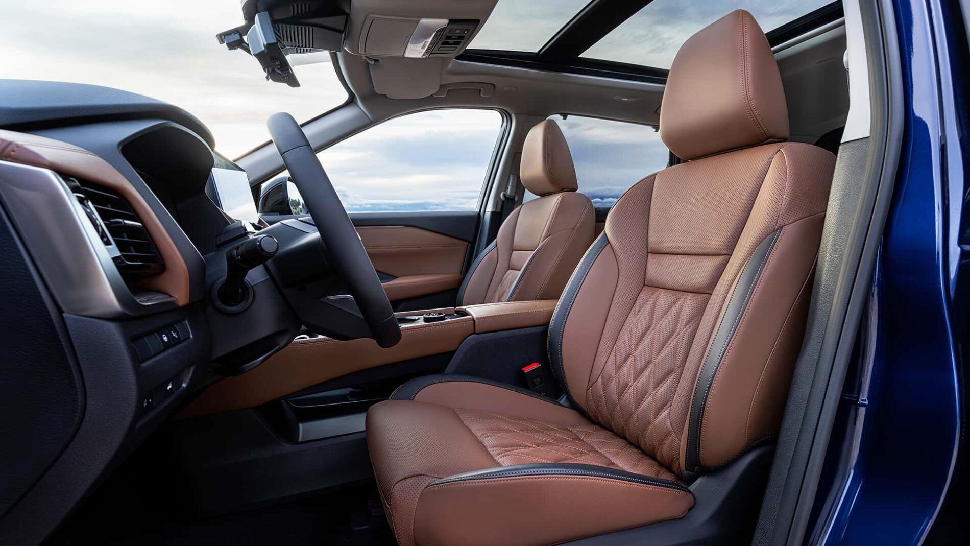 Interiér modernizovaného modelu nadväzuje na architektúru súčasnej generácie, no Nissan sa snažil zlepšiť jeho vnímanú kvalitu. Objavili sa nové materiály, napríklad vylepšené prešívané čalúnenie v hnedom odtieni Chestnut alebo nové dekoratívne prvky v stredovej konzole. Niektoré verzie ponúkajú aj prémiové kožené čalúnenie či elektricky nastaviteľné sedadlá.